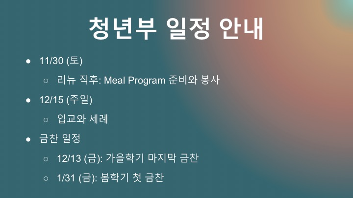 11/17 주일 청년부 광고