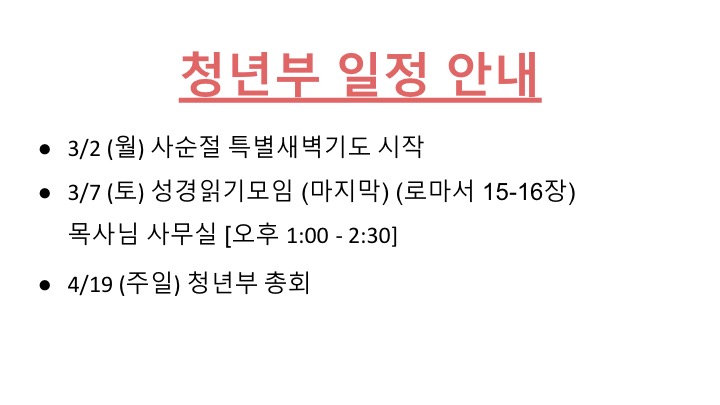 03/01 주일 청년부 광고