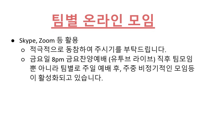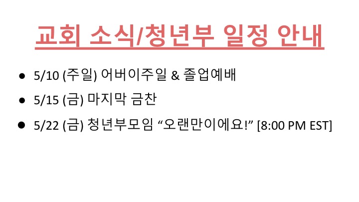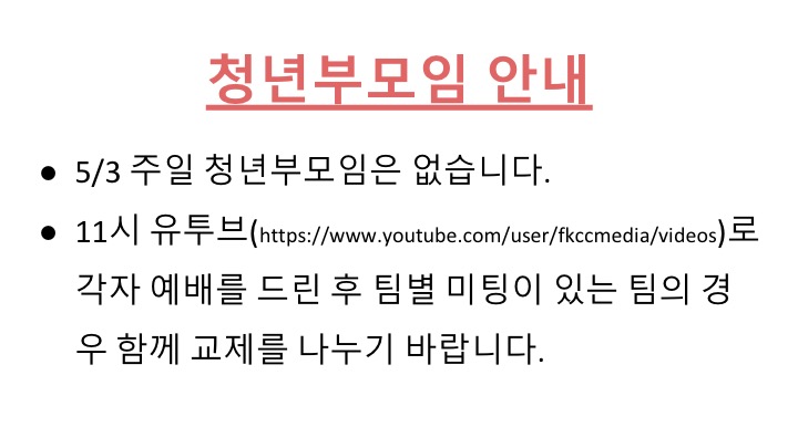 내일 (5월 3일) 예배는 이렇게 협조해 주시기 바랍니다.