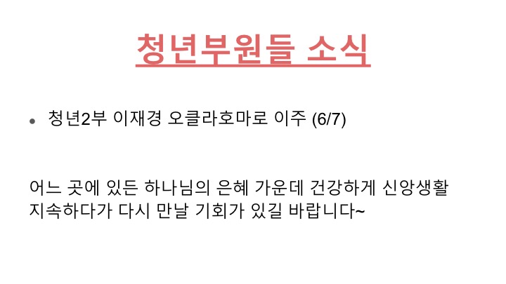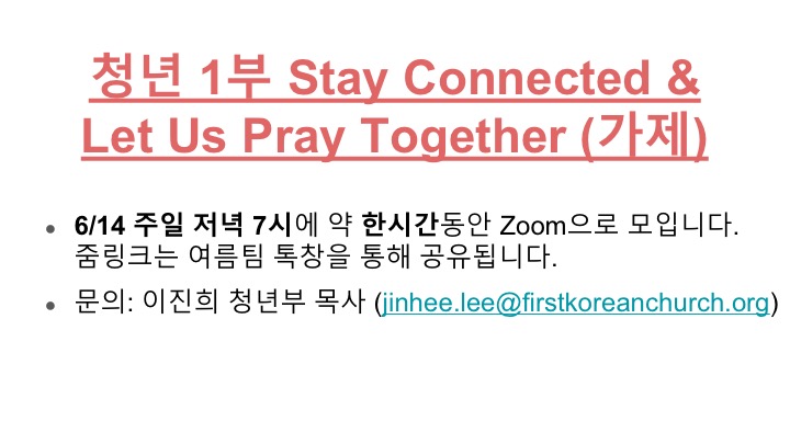 내일 (6월 14일) 예배는 이렇게 협조해 주시면 감사하겠습니다.