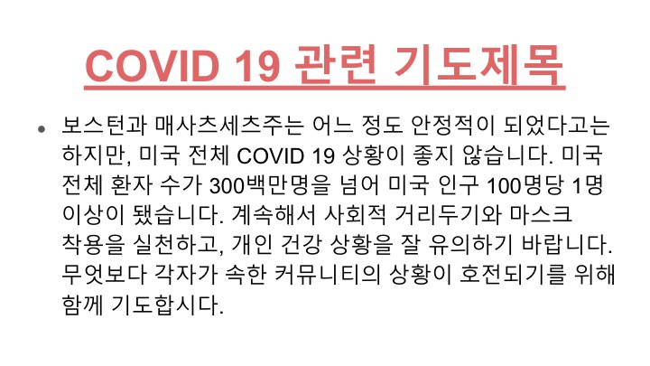 이번 주 (7월 12일) 예배는 이렇게 협조해 주십시오.