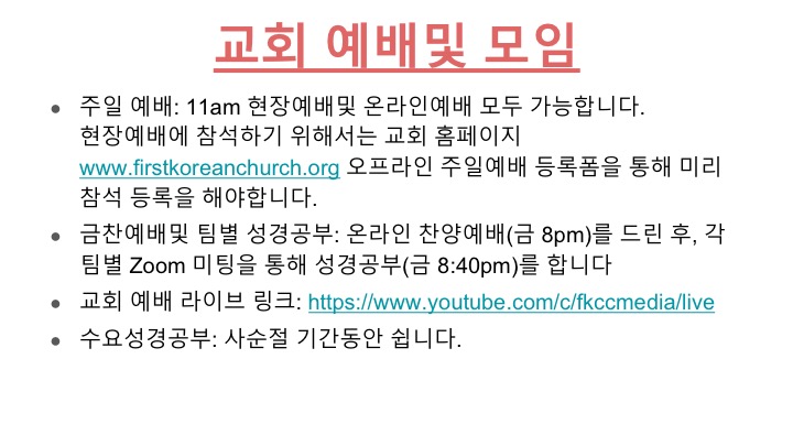 내일(2월 28일) 주일예배 이렇게 협조해 주시면 감사하겠습니다.