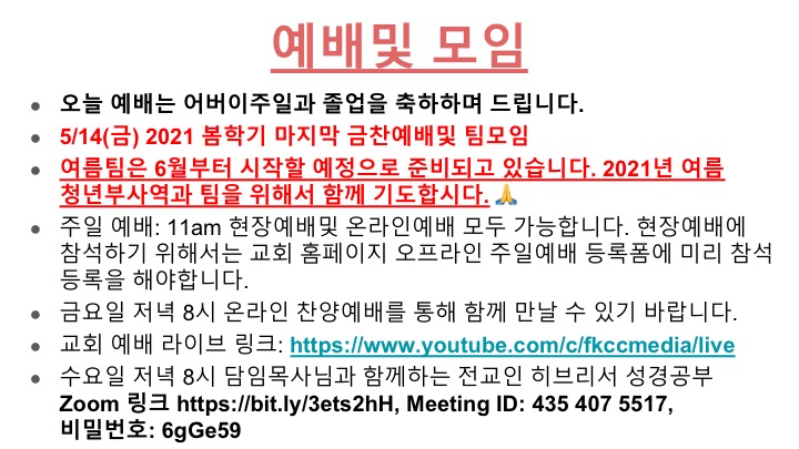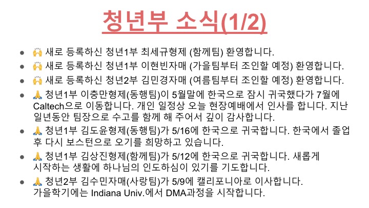 05/09 주일 청년부 광고