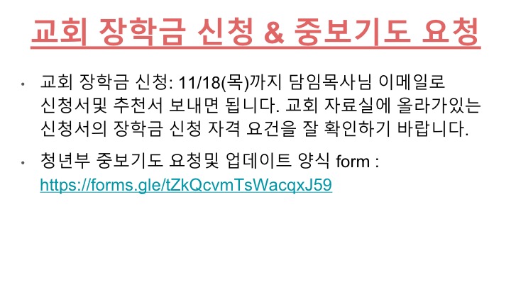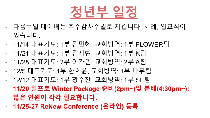 11/14 주일 청년부 광고