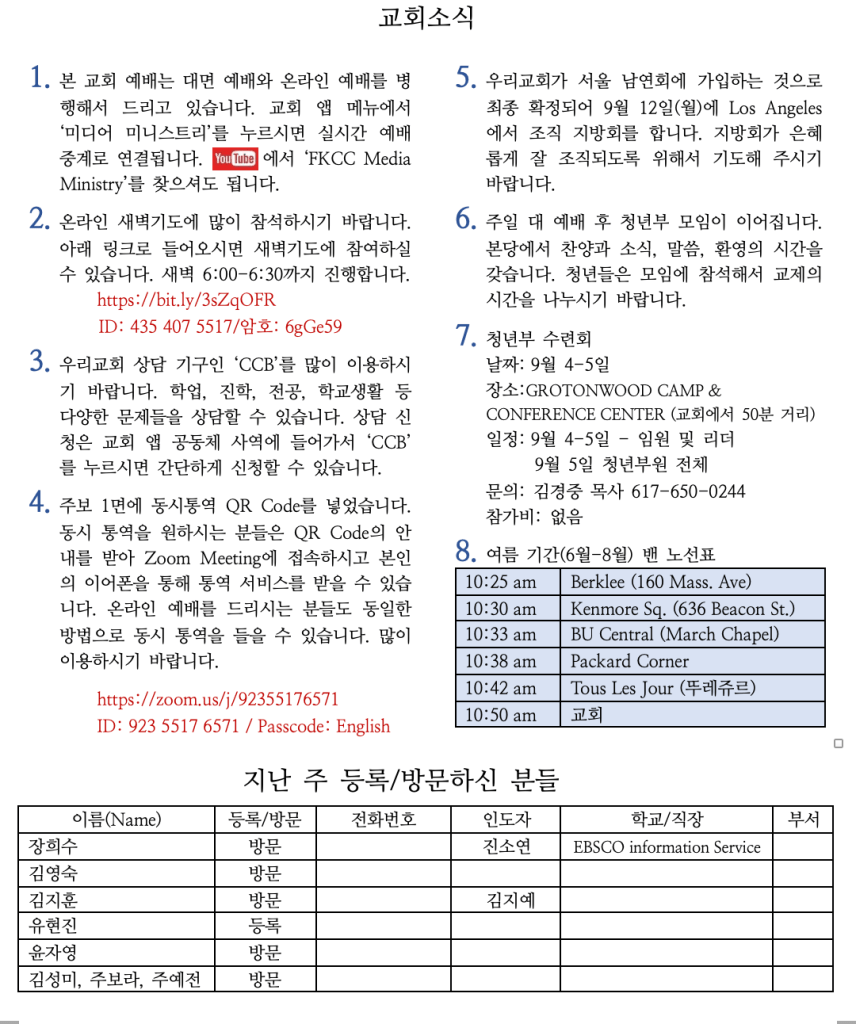 8.14.22 교회소식
