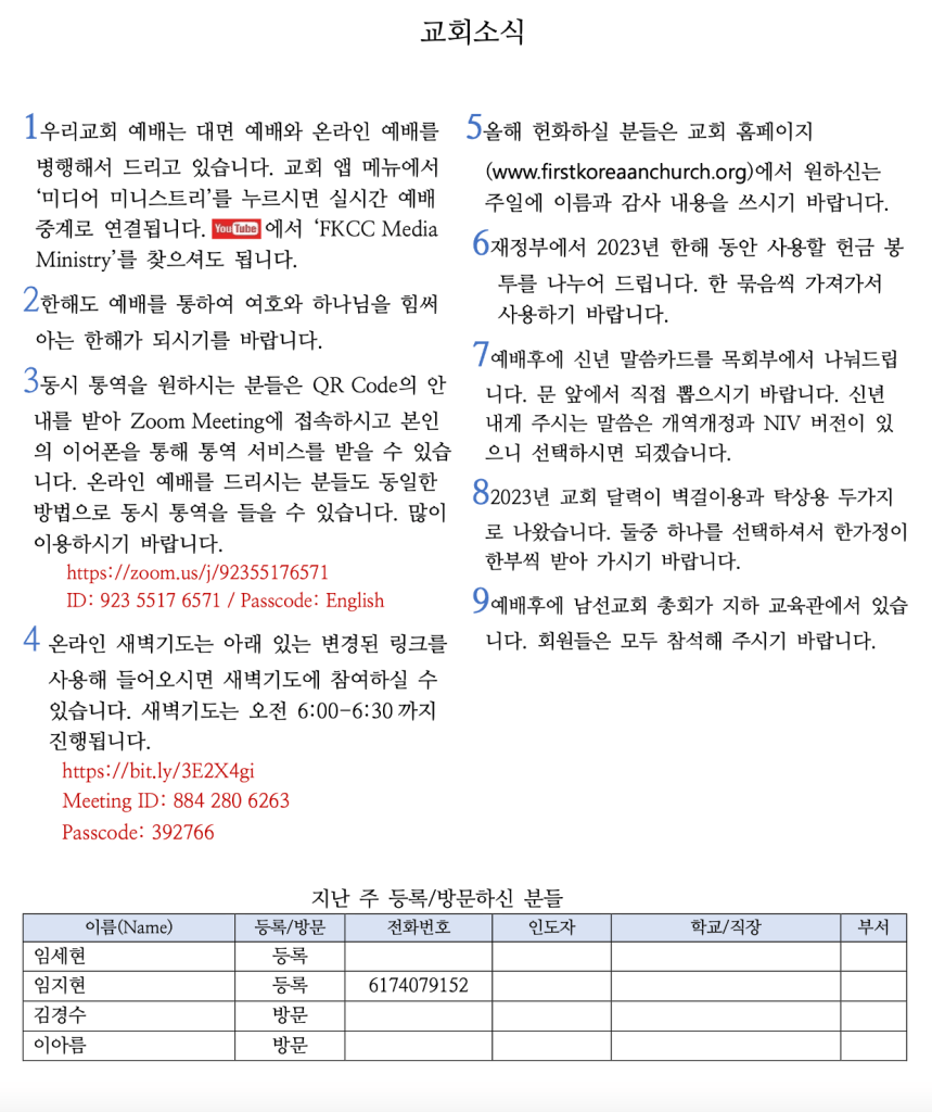 1.8.23 교회소식
