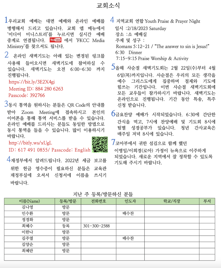 2.12.23 교회소식