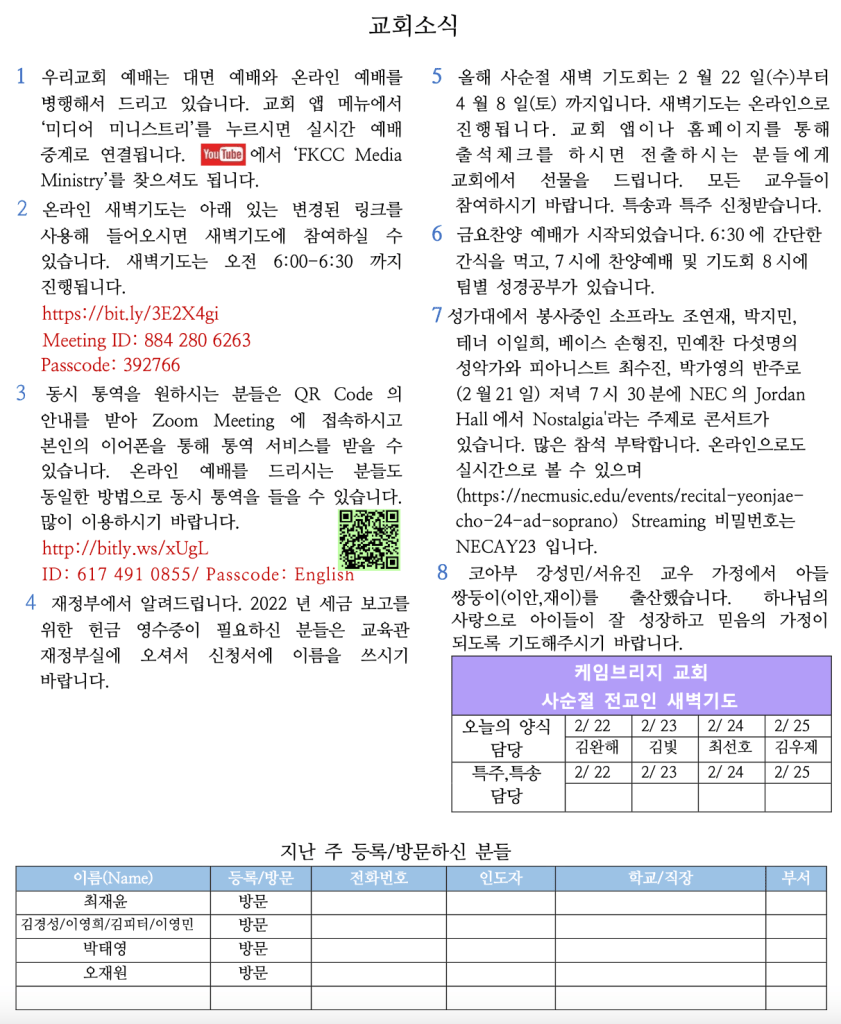 2.19.23 교회소식