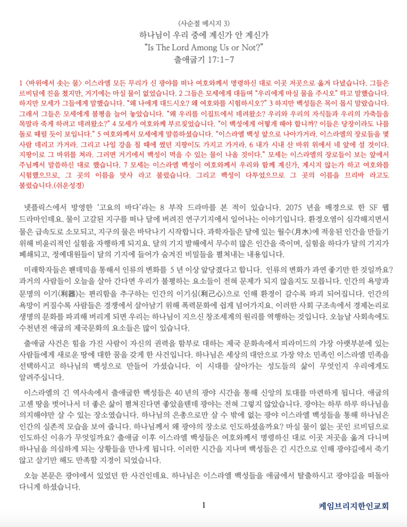 3월 12일, 주일 예배 안내합니다.