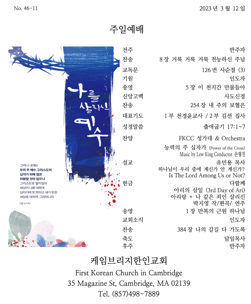 3월 12일, 주일 예배 안내합니다.