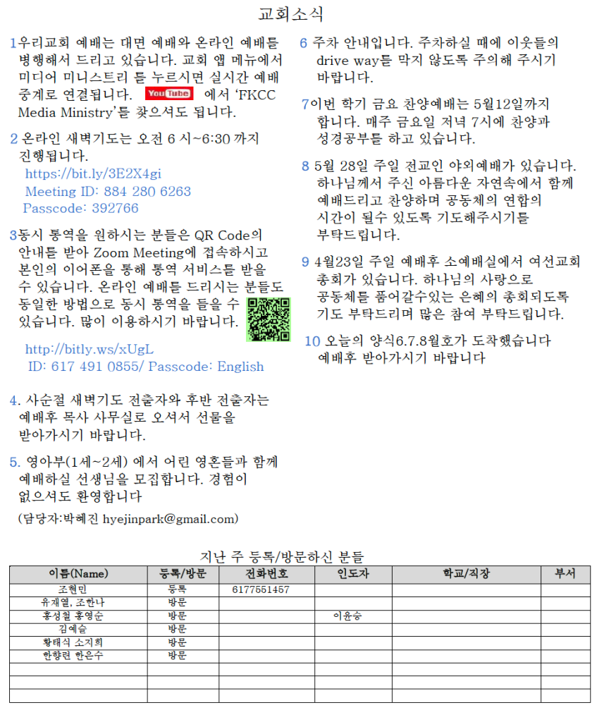 04.16.2023 교회소식
