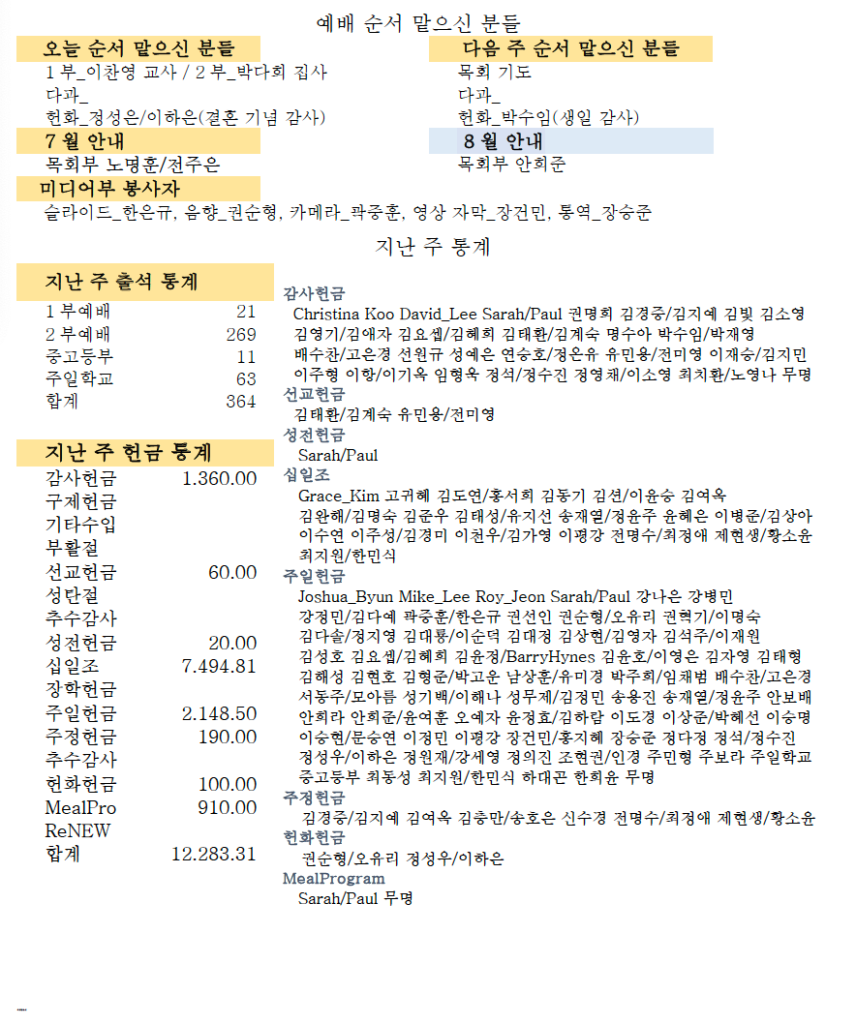 07.30.2023 교회 소식