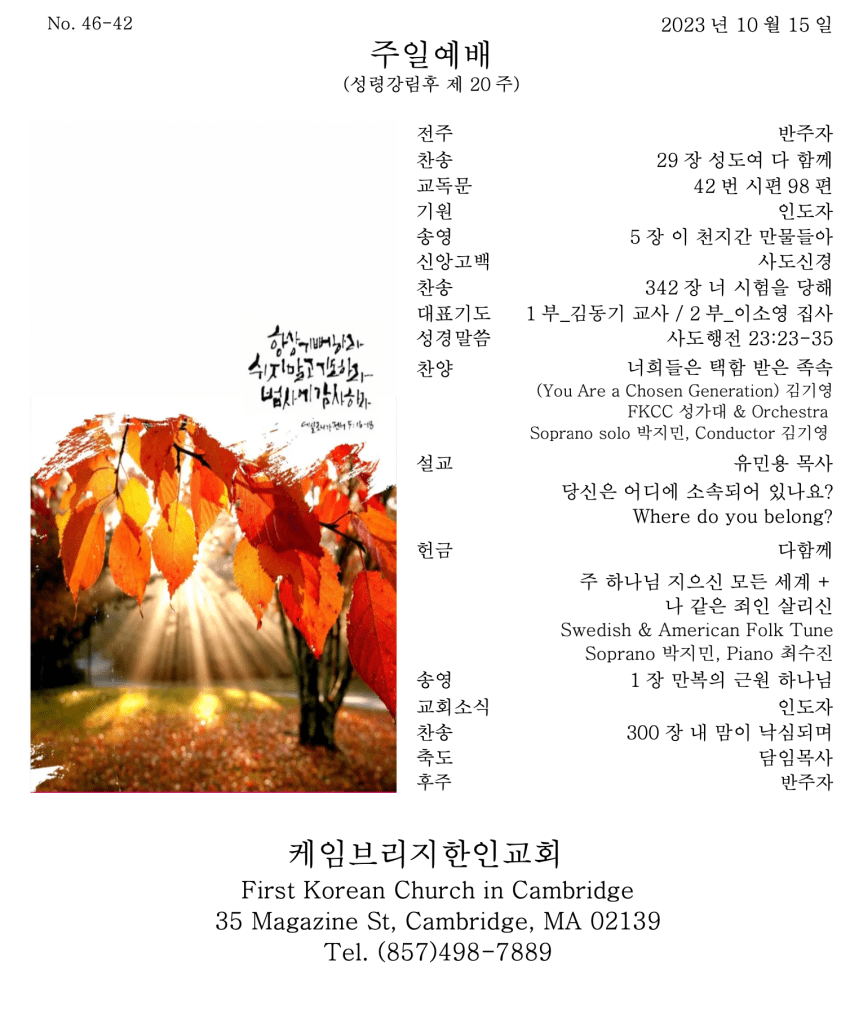 10. 15. 2023 교회소식