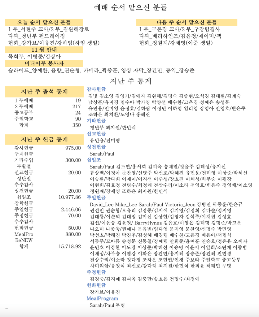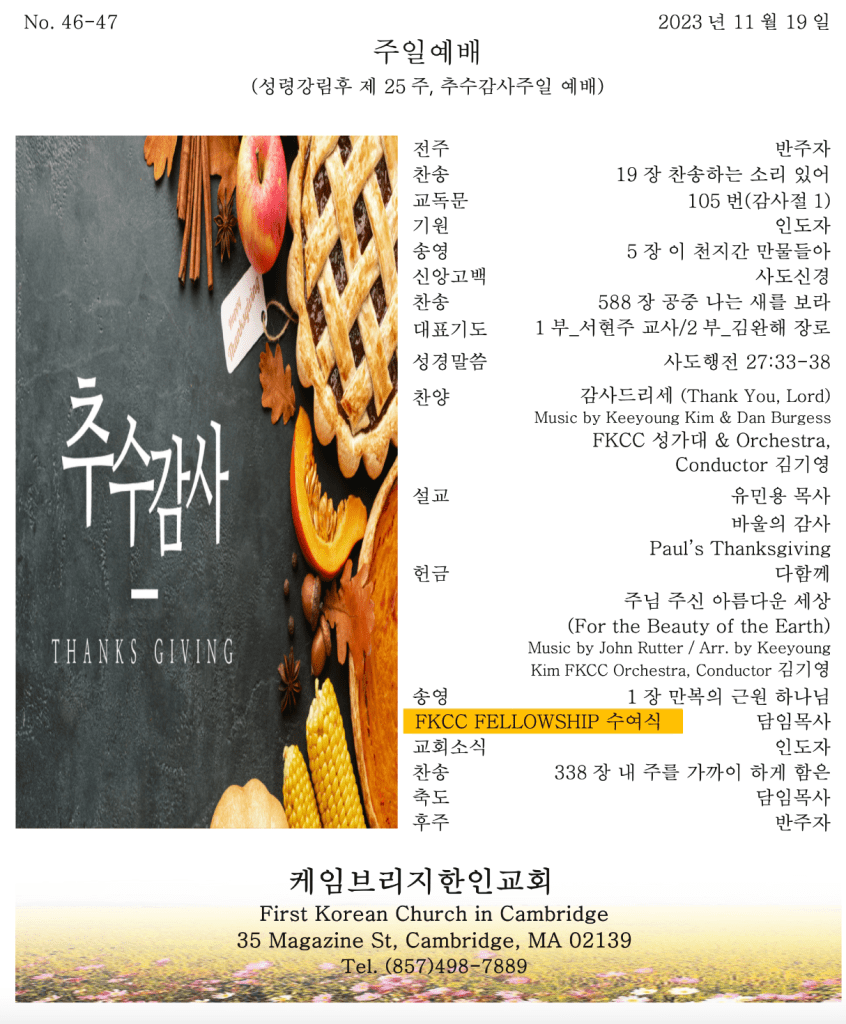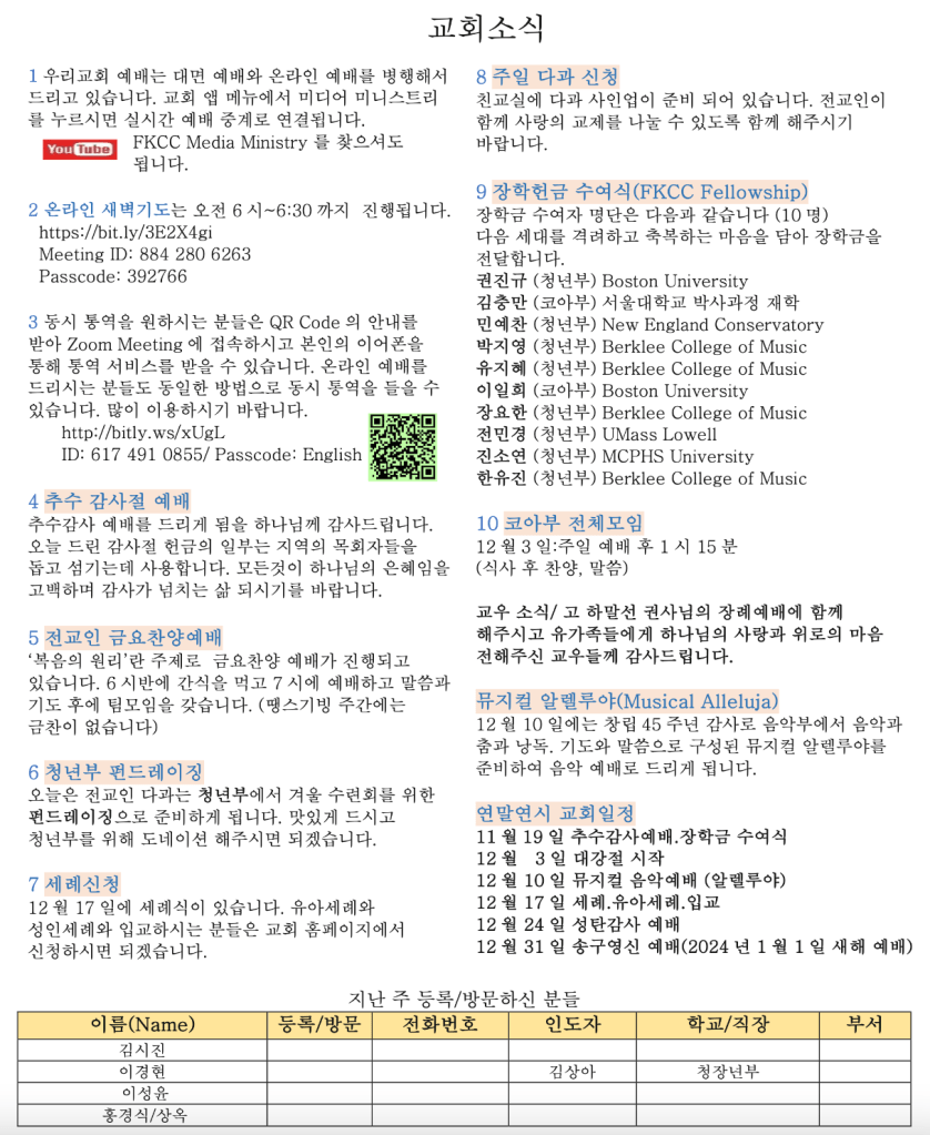 11.19.2023 교회 소식
