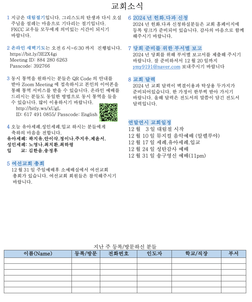 12.17.2023 교회 소식