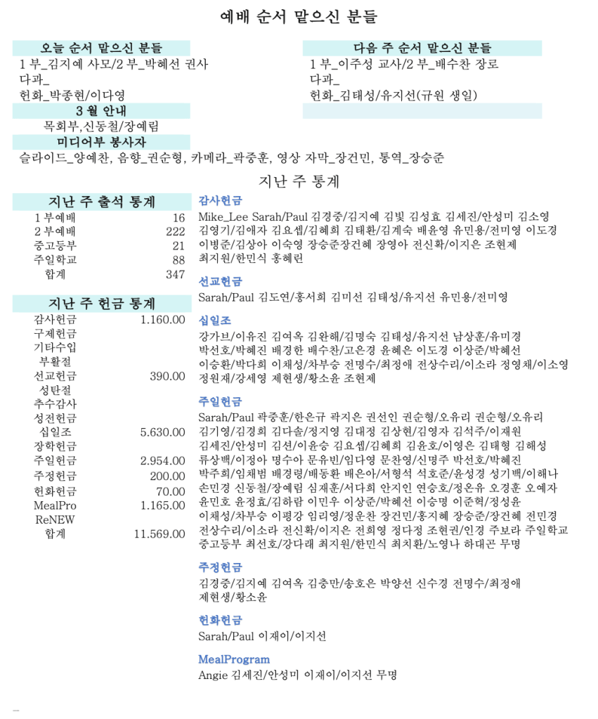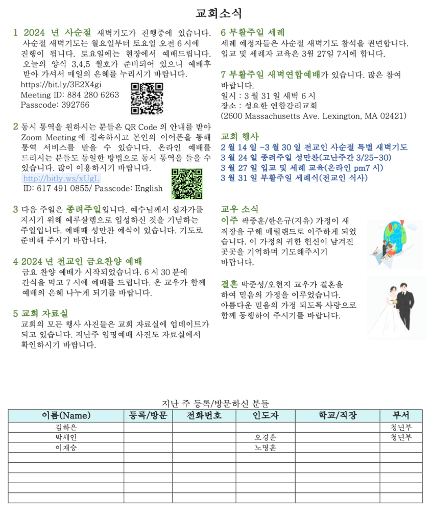 03. 17. 2024 교회소식