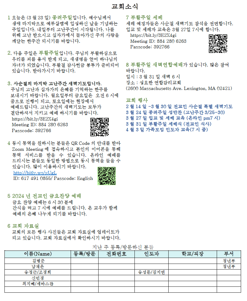 03.24 2024 교회소식