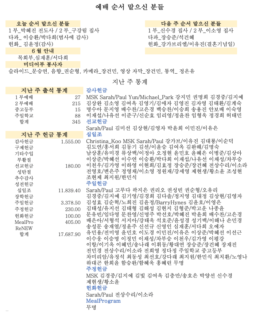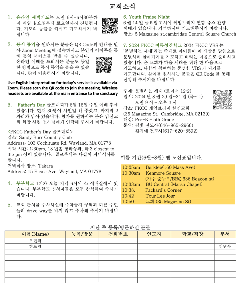 06. 09 2024 교회소식