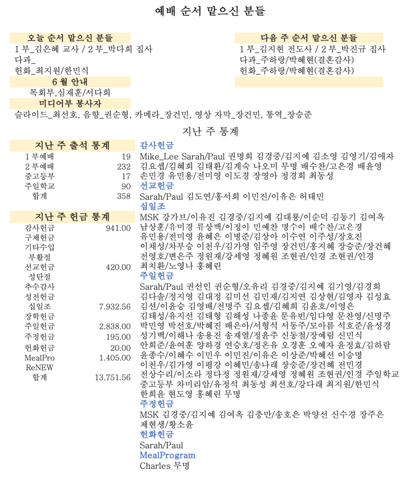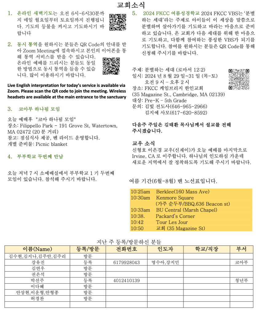 06. 23. 2024 교회소식