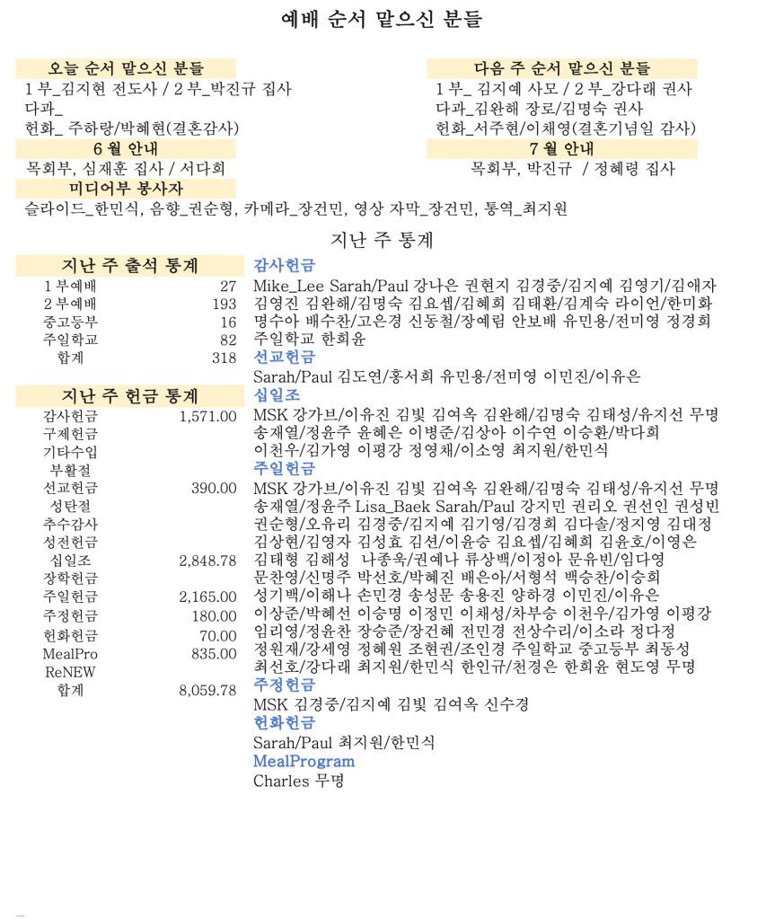 06. 30. 2024 교회소식