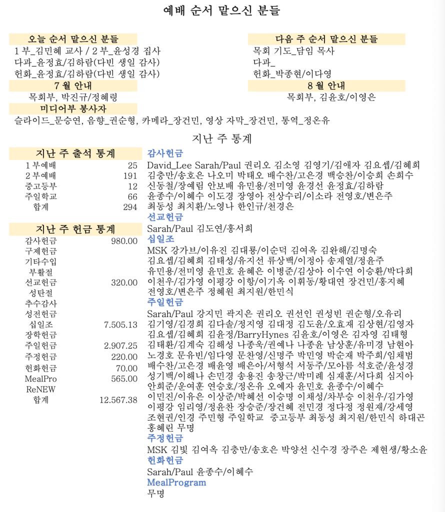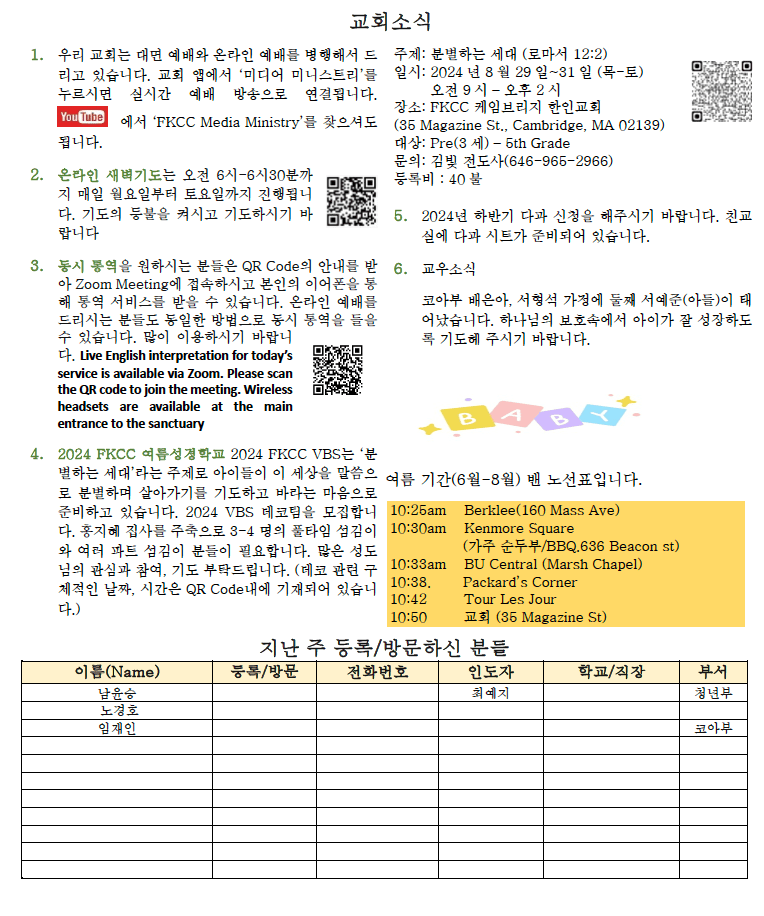 07. 28. 2024 교회소식