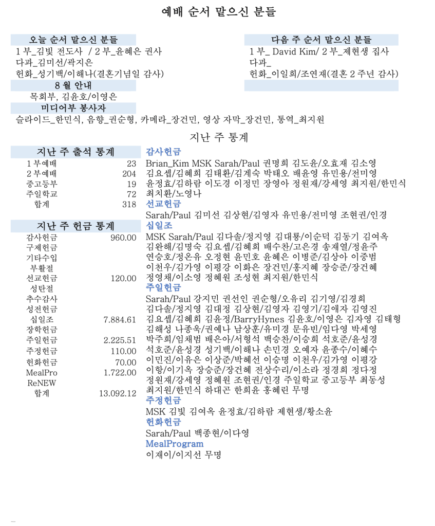 08. 11 2024 교회소식