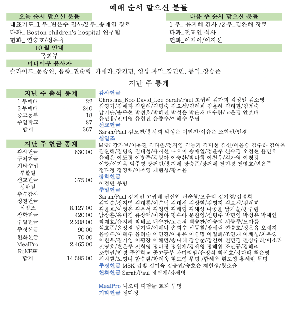 10. 06 2024 교회소식