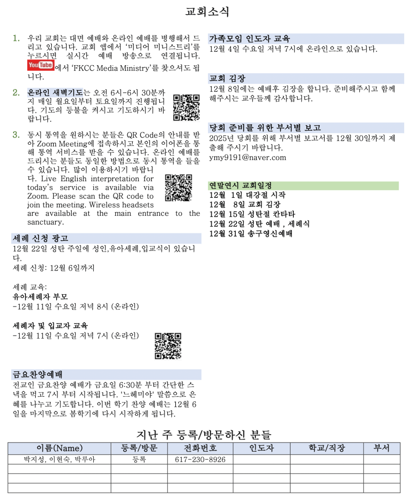 12.01 2024 교회소식