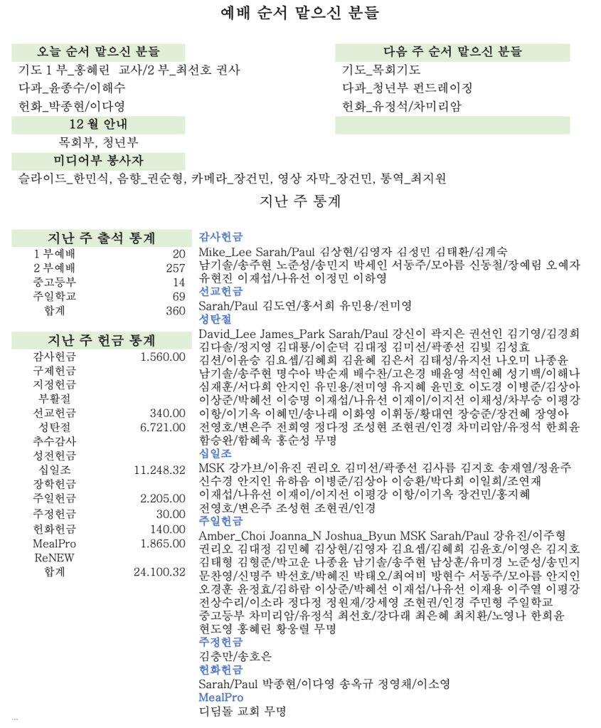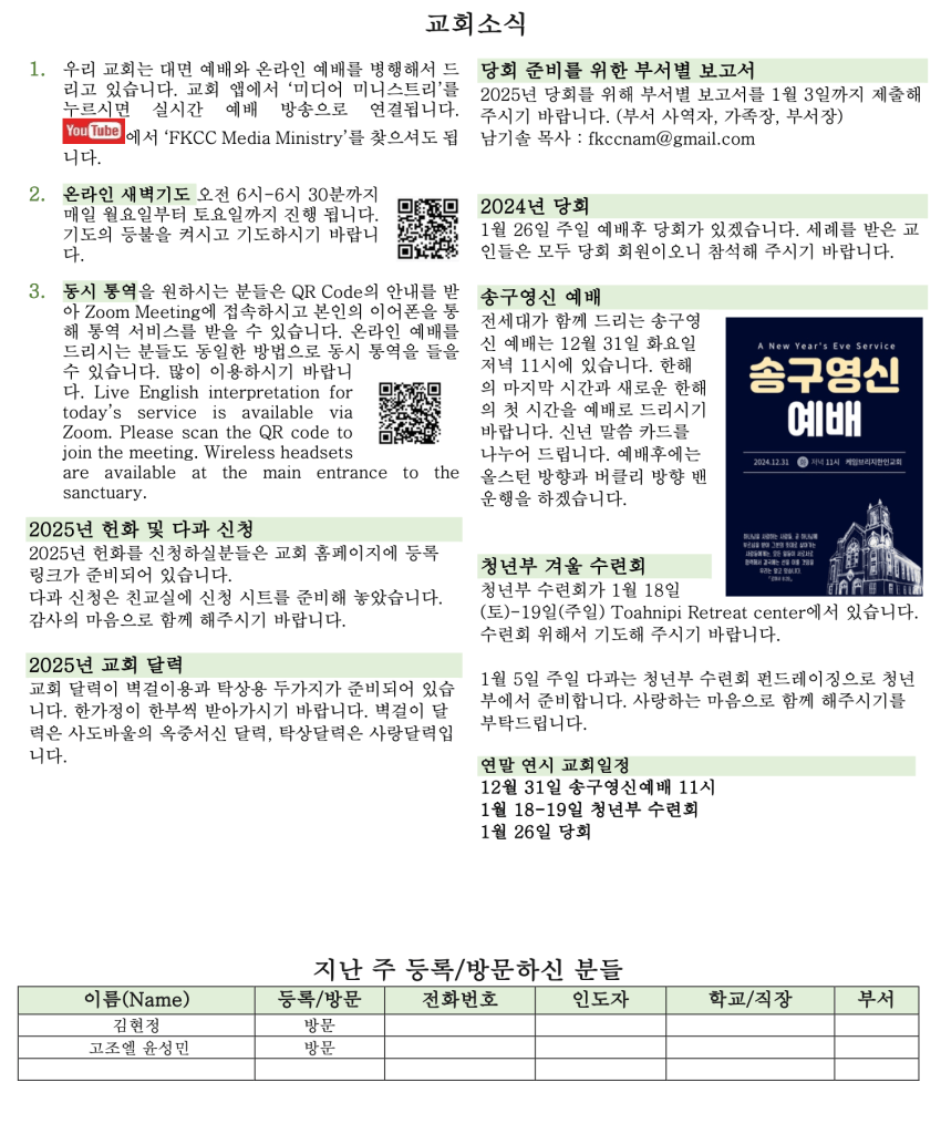 12. 29. 2024 교회소식