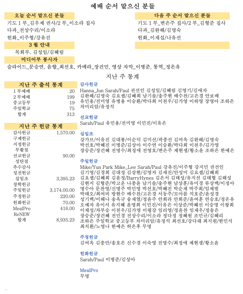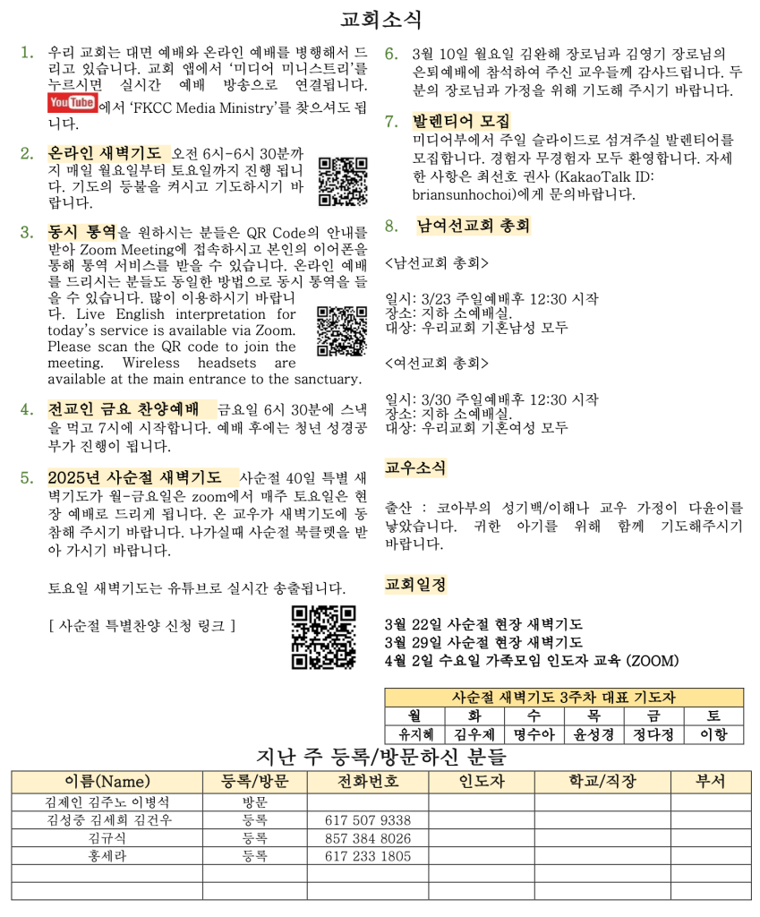03. 16. 2025 교회소식