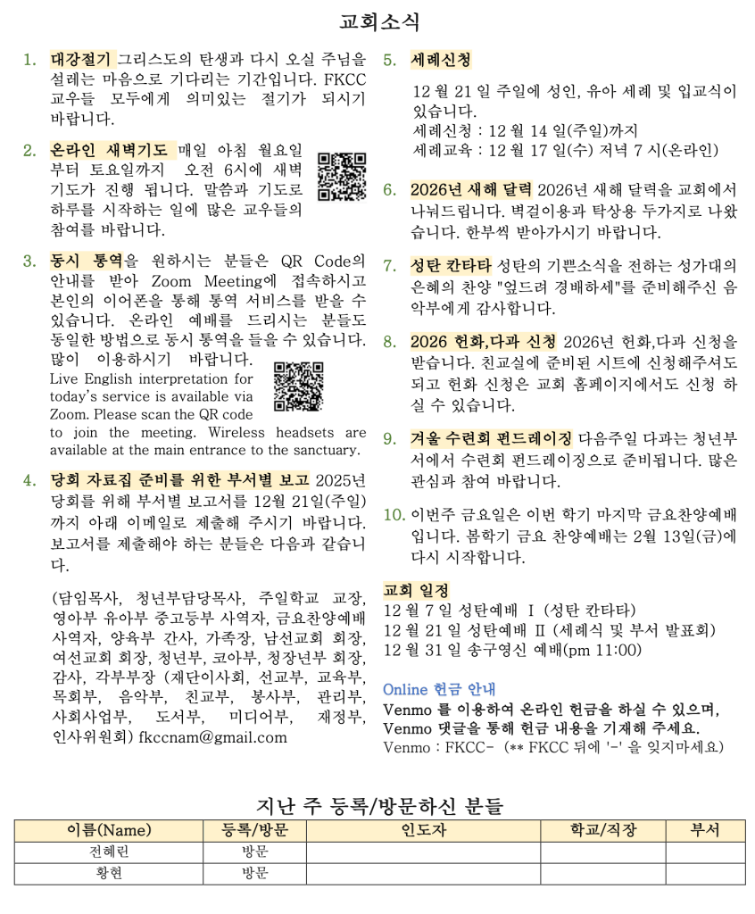 1207 2025 교회소식