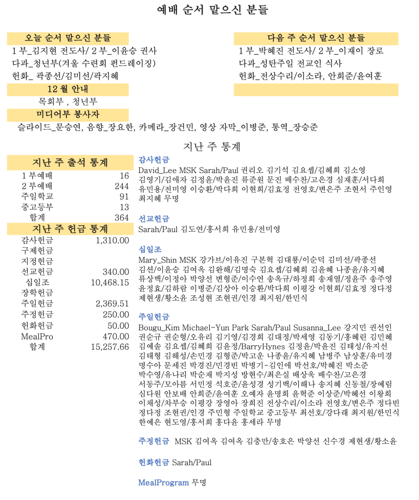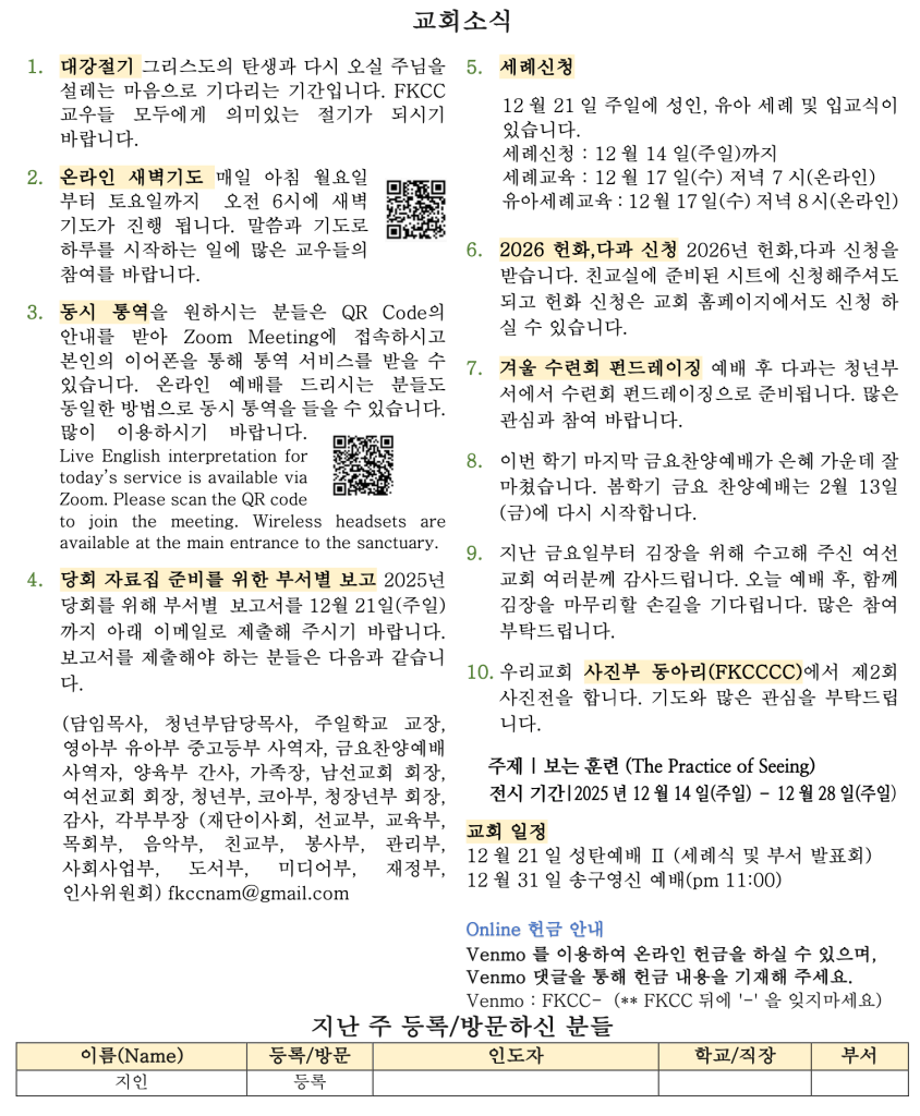 12. 14. 2025 교회소식