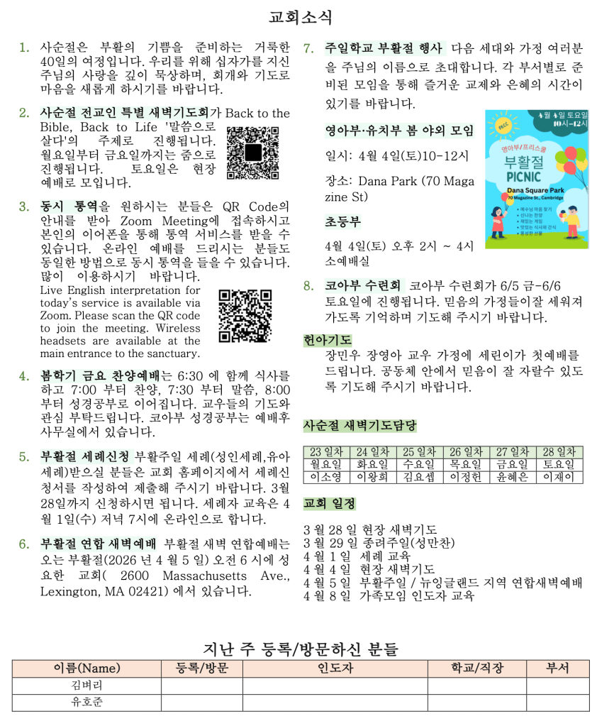 03 22 2026 교회소식