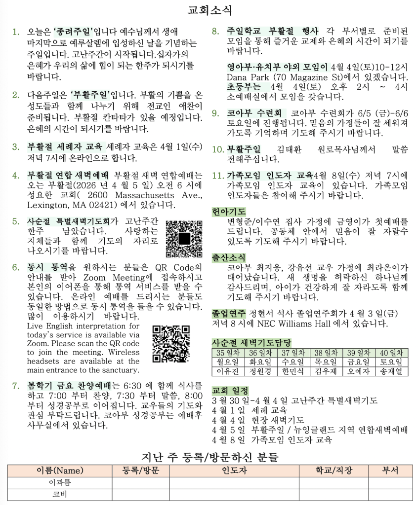 03 29 2026 교회소식