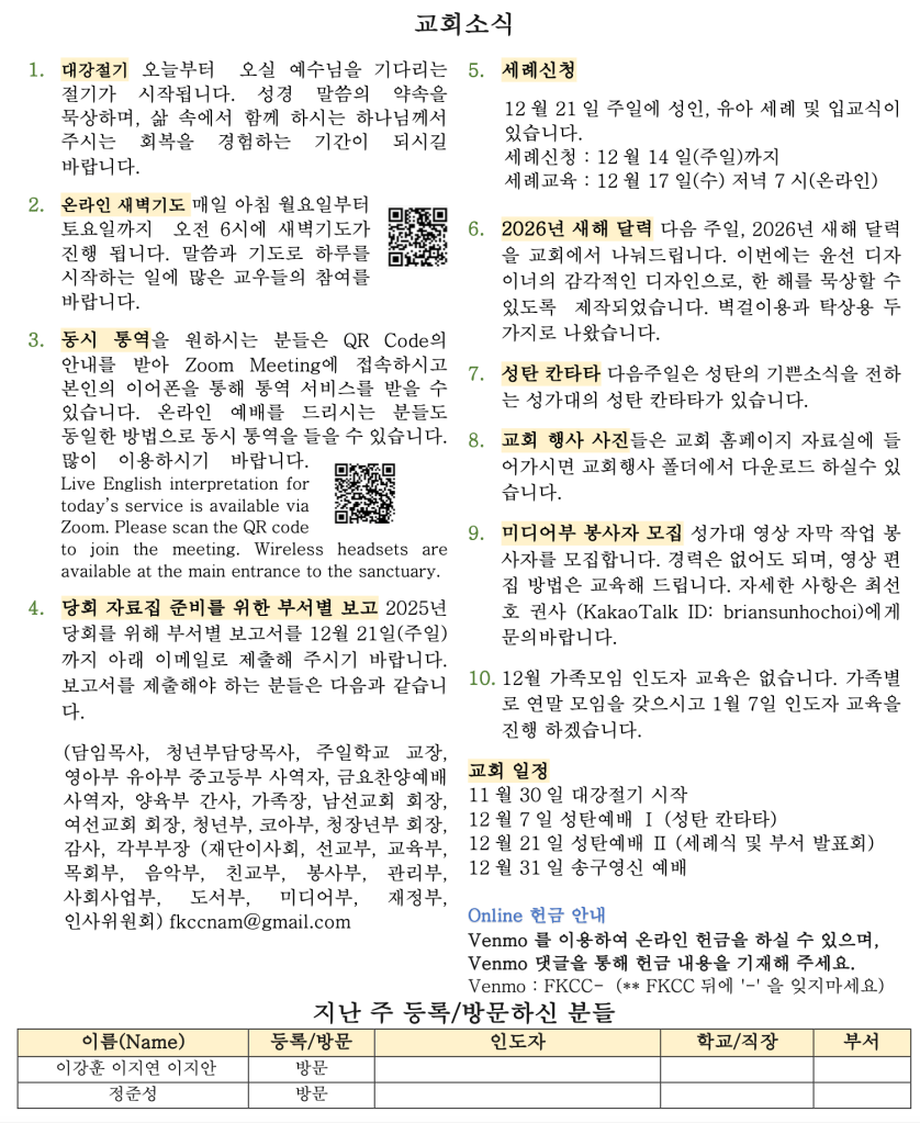 다가오는 2026년도 하나님이 행하실 일을 위해 우리가 마음을 쏟아야 할 것은 바로 예배입니다. 예배를 세워가는 일에 우리의 삶을 아낌없이 드려야 합니다. 우리 삶과 가정이 예배로 시작되고 하나님께 마음을 드릴 때 삶이 예배로 채워지는 은혜를 경험하게 될 것입니다. 하나님과 함께 걷는다는 것은 우리의 생각과 지식보다 하나님의 인도하심을 믿는 것입니다. 시대적 책임을 감당하는 일도 변화속에서 믿음을 앞에 두는 것입니다. 믿음이 내 삶의 주어가 되는 것입니다. 하나님은 세상과 다른 방법으로 일하십니다. 성도는 예수 그리스도가 길이요 진리요 생명임을 믿으며 살아가는 것입니다. 오늘 나누어 드리는 2026년 달력의 1월의 첫 장을 여시면 우리 마음안에 주님의 마음을 채우소서라는 문구가 있습니다. 상한 마음을 만져주시는 주님과 동행하며 주님의 마음을 채워가시기 바랍니다.