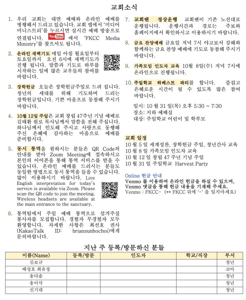 이런 상황 속에서 오늘 우리 교회는 창립 47주년을 맞이하고 있습니다. 지금 우리가 처한 상황을 심각하게 받아들인다면, 마냥 기뻐할 수만은 없습니다. 우리는 스스로에게 두 가지 질문을 해야 합니다. 그리고 이 질문에 답하기 위해 함께 고민해야 합니다.
