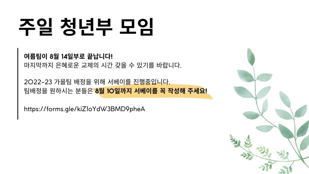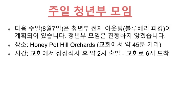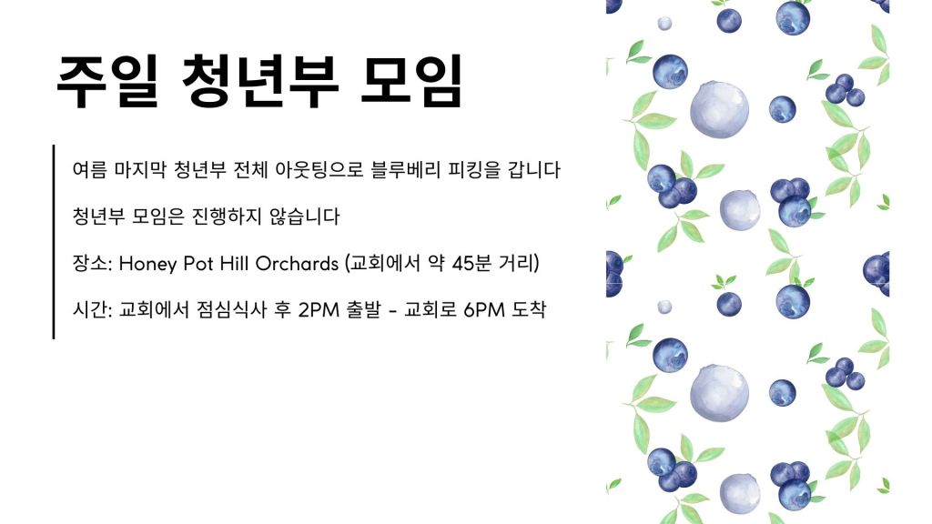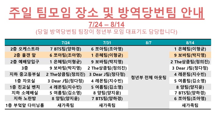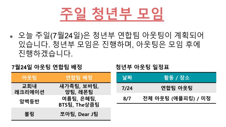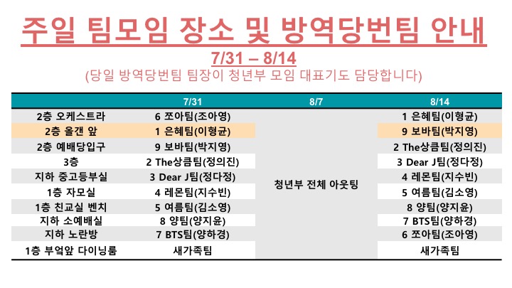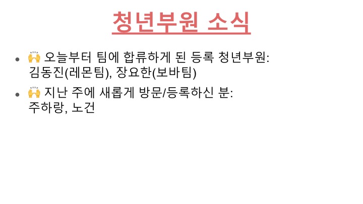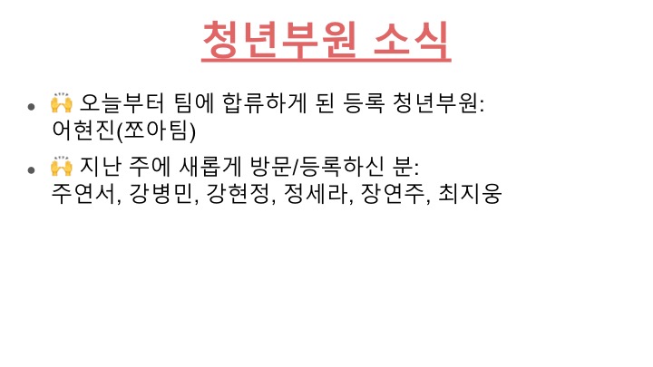 청년부 주일 오후 1시 모임