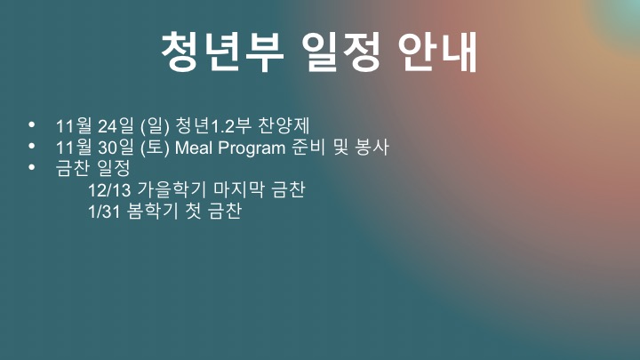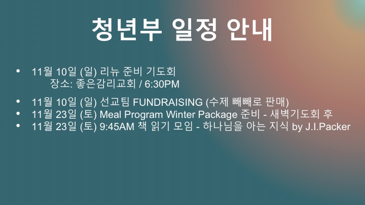 11/03 주일 청년부 광고