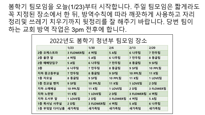 01/23 주일 청년부 광고